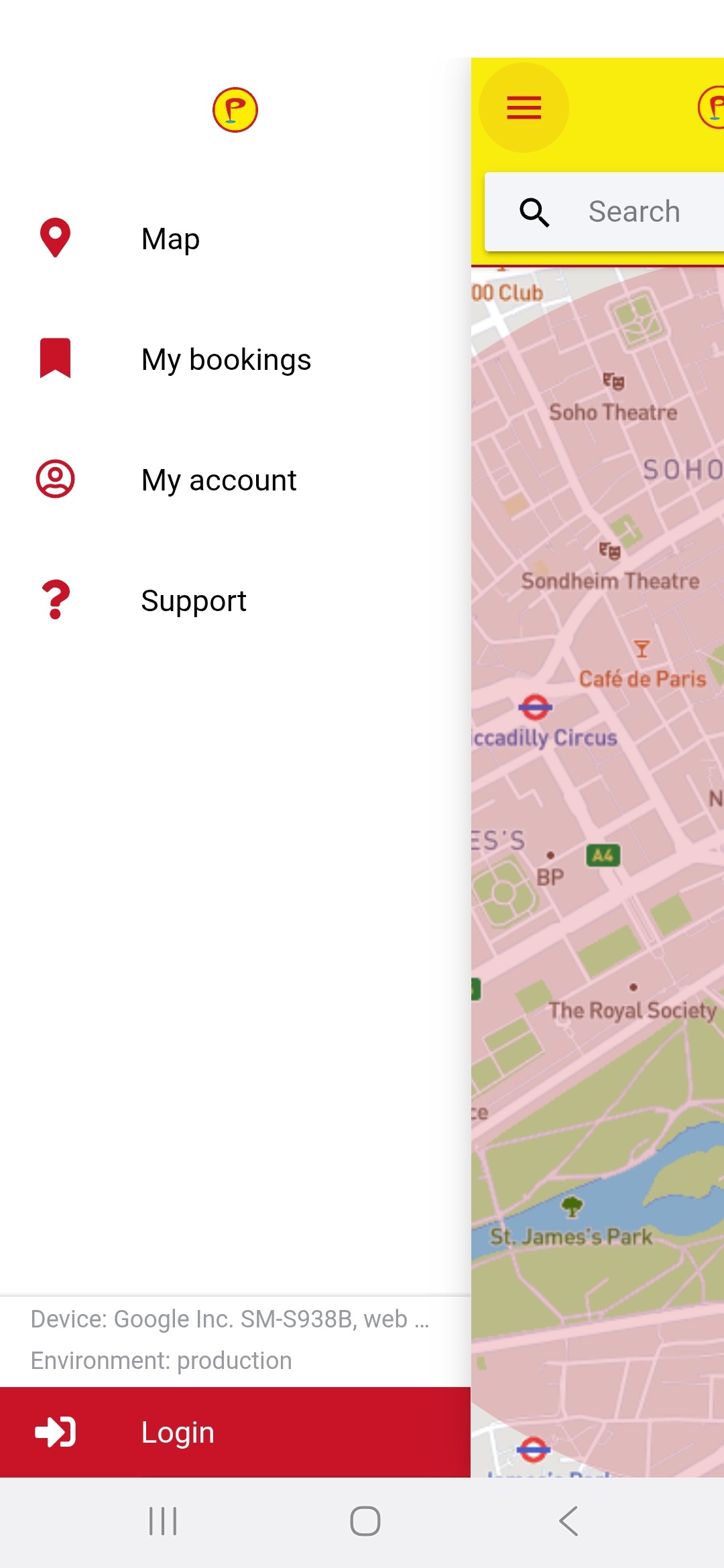 Enter the app and tap the icon at the top left of the screen to reveal the menu. Tap ‘Login’ on the red tab the bottom of the screen. |