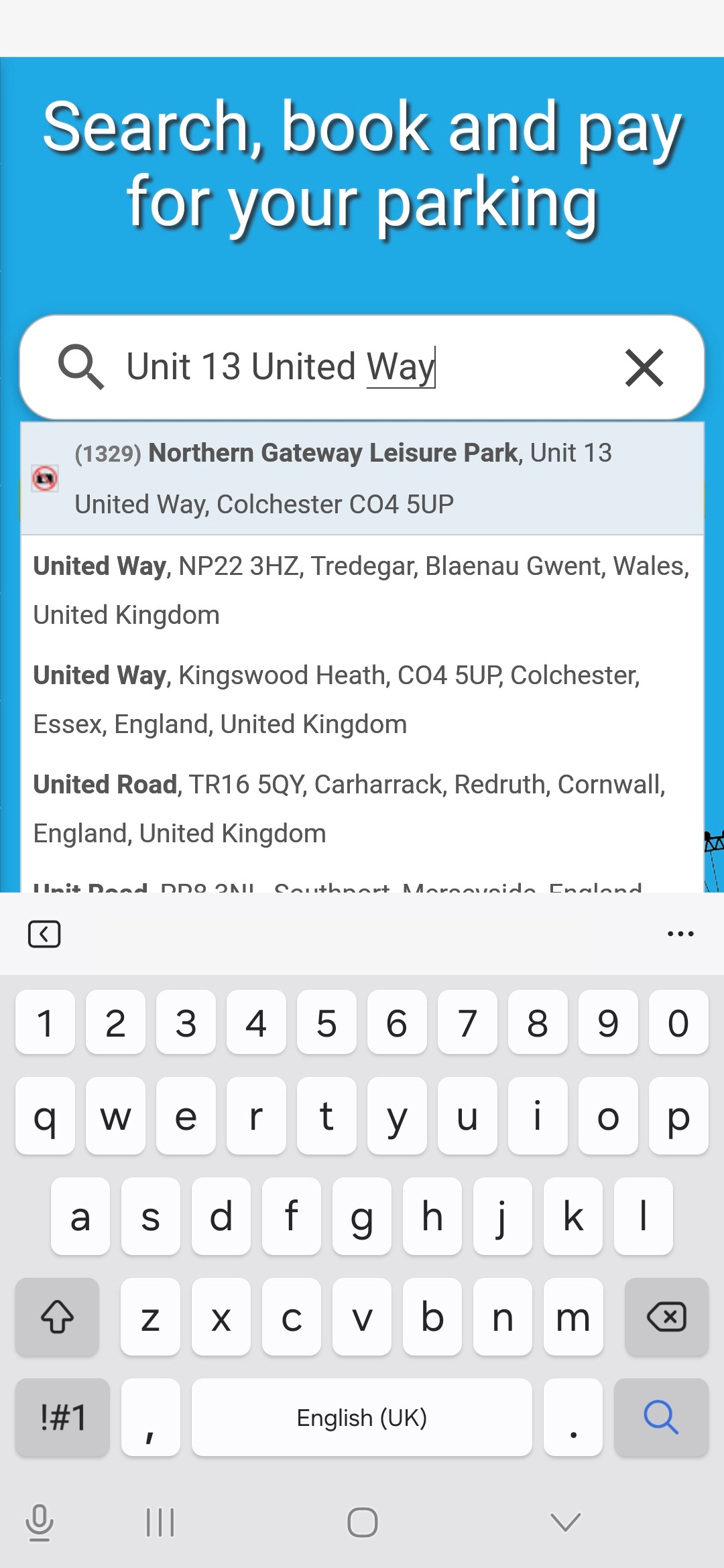 Upon entering the website you will see a search bar. Use the search bar to type in the name or location number of the car park and select where you would like to book a parking session from the list. |