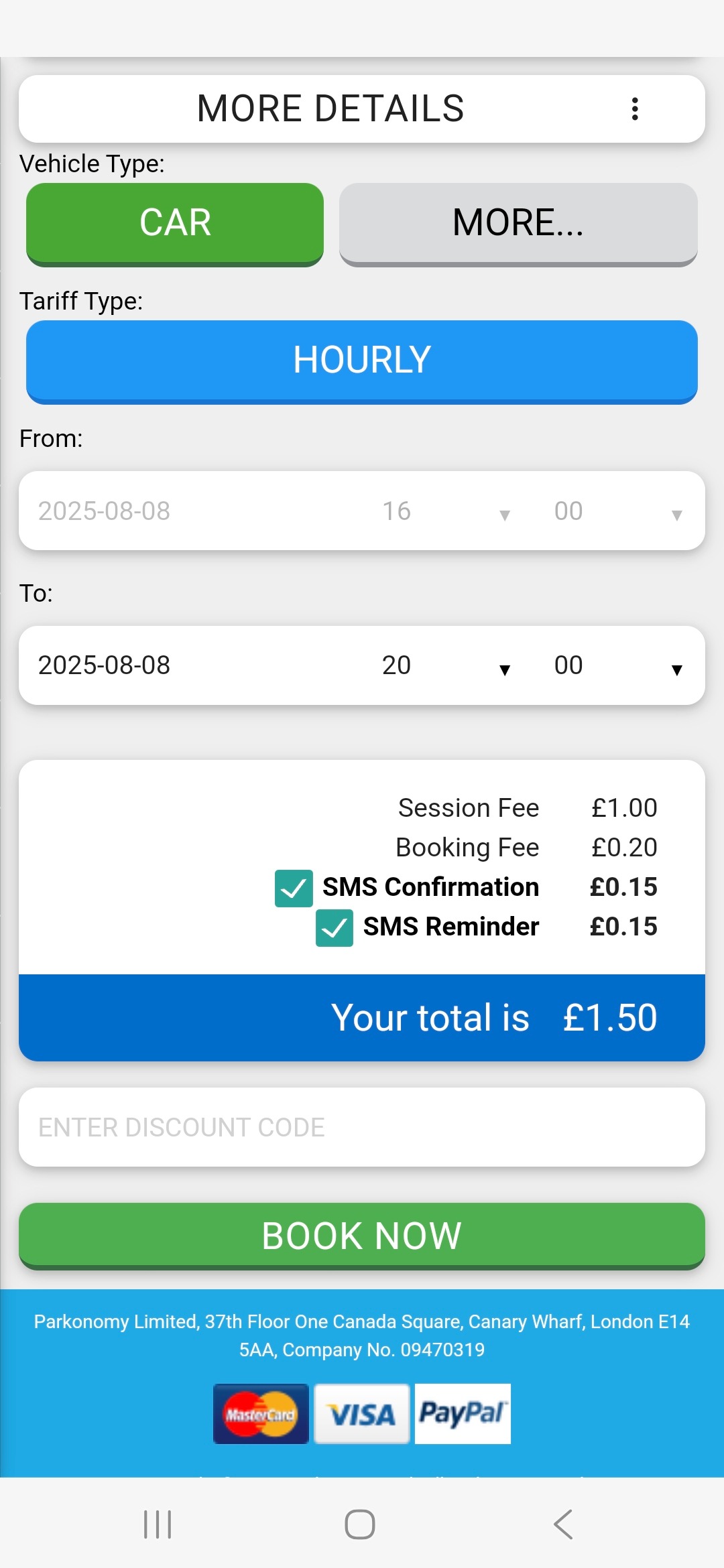 Scroll down the page, enter the time you wish to book the parking session to and tap ‘BOOK NOW’.