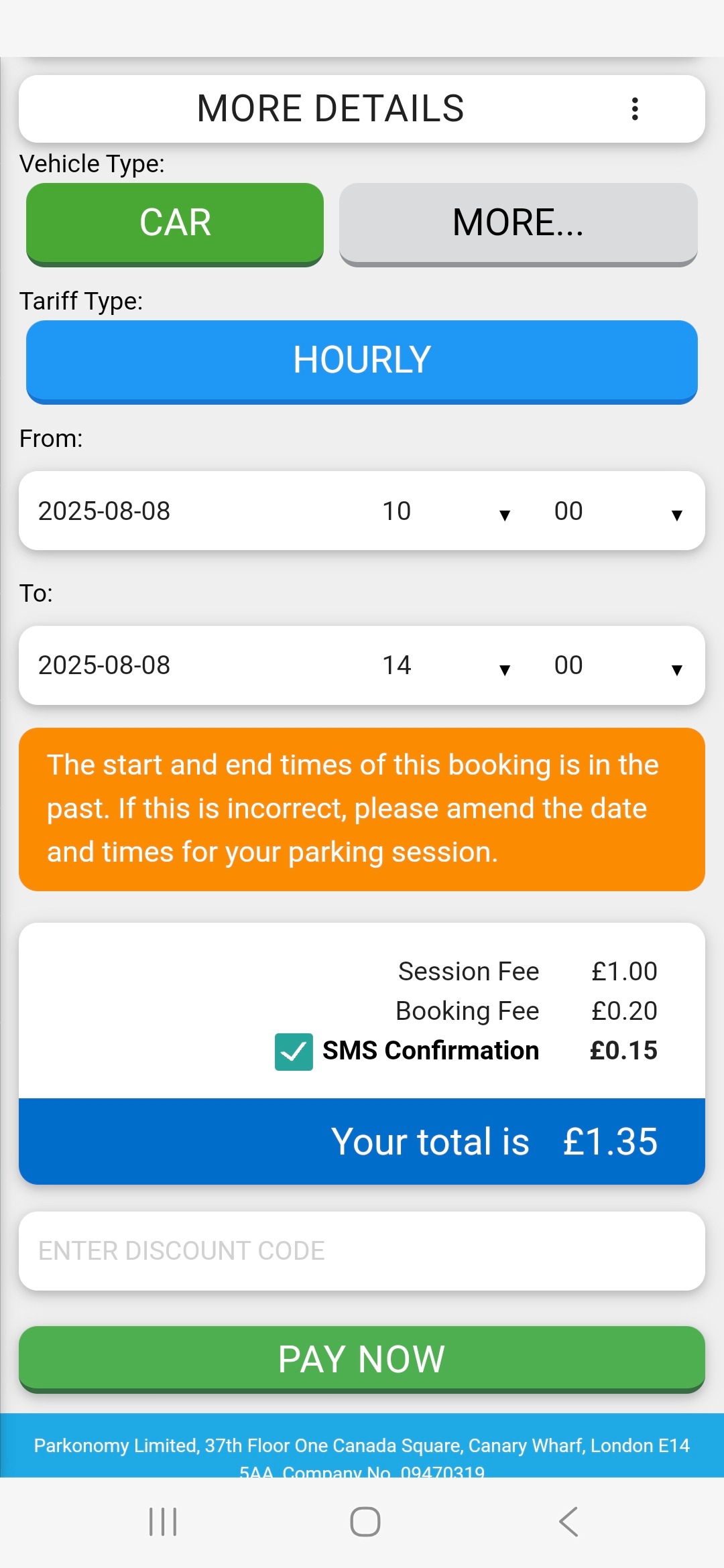 This car park does allow post-payment because you can book when you started a parking session after your arrival time. You will receive an additional message if your start and end times are before you are making a payment. |