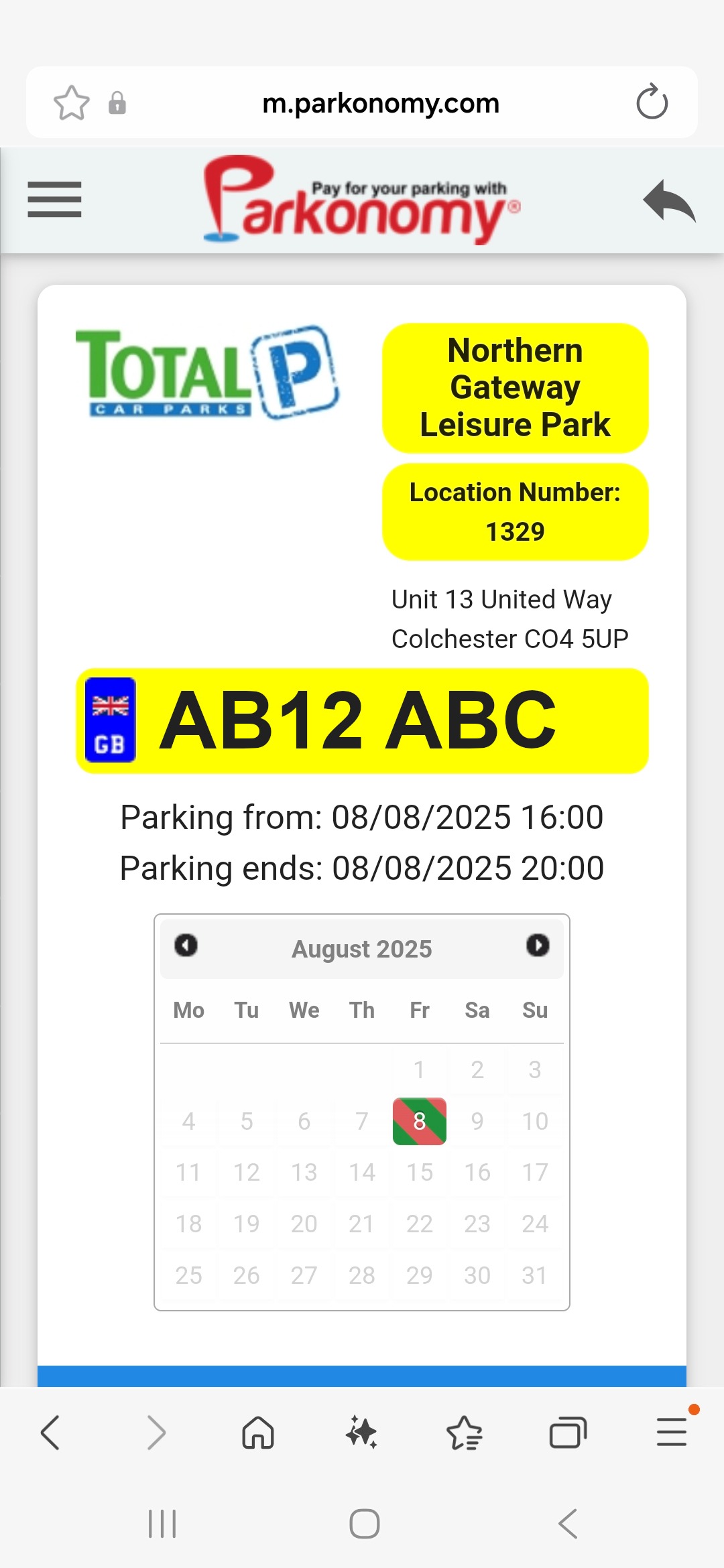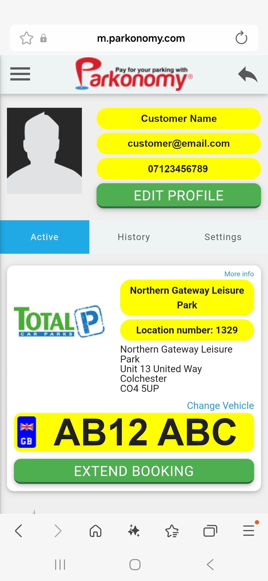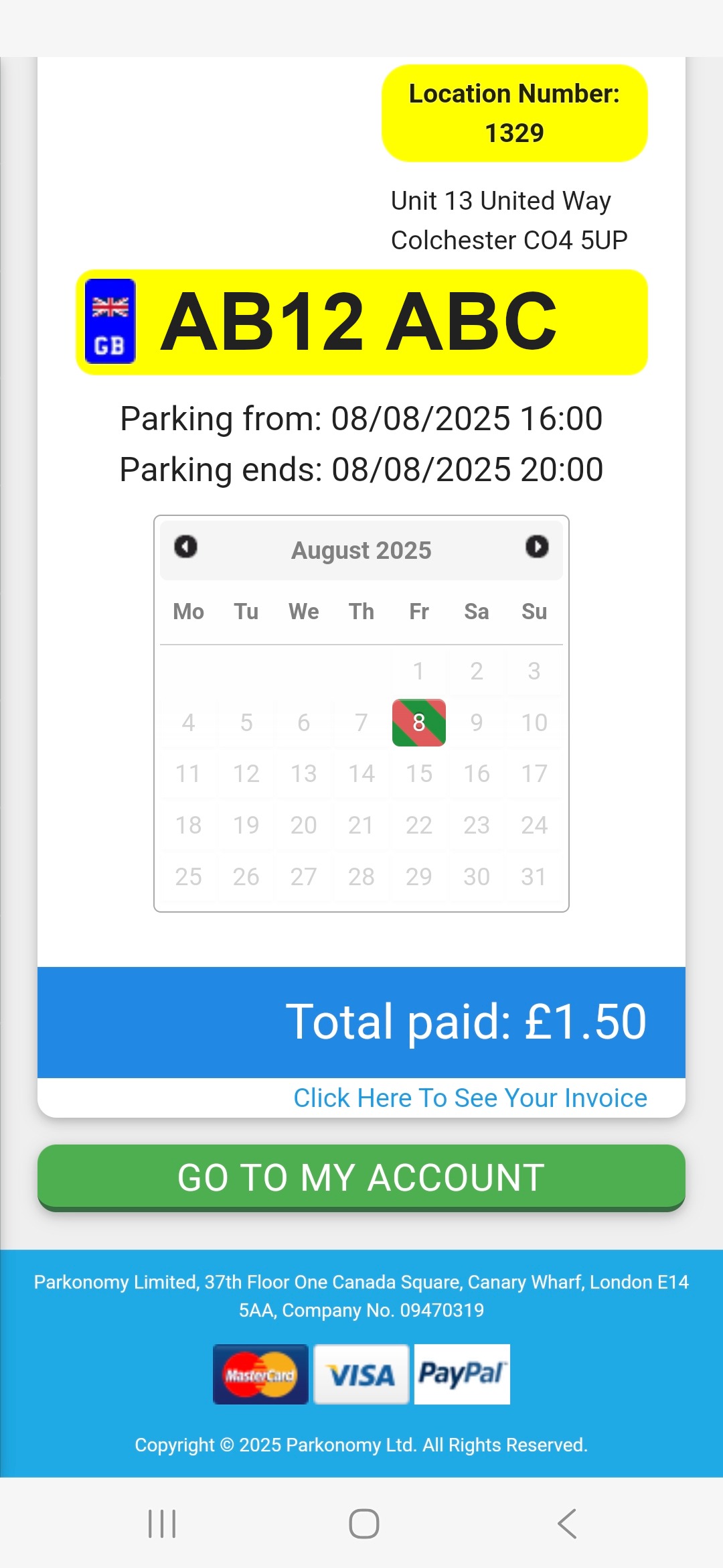 Tap on the ‘Active’ tab if you want to get an invoice from an active session or ‘History’ if you wish to find a past parking session. To open details of the parking session you selected, tap on the blue ‘More info’ text. |
