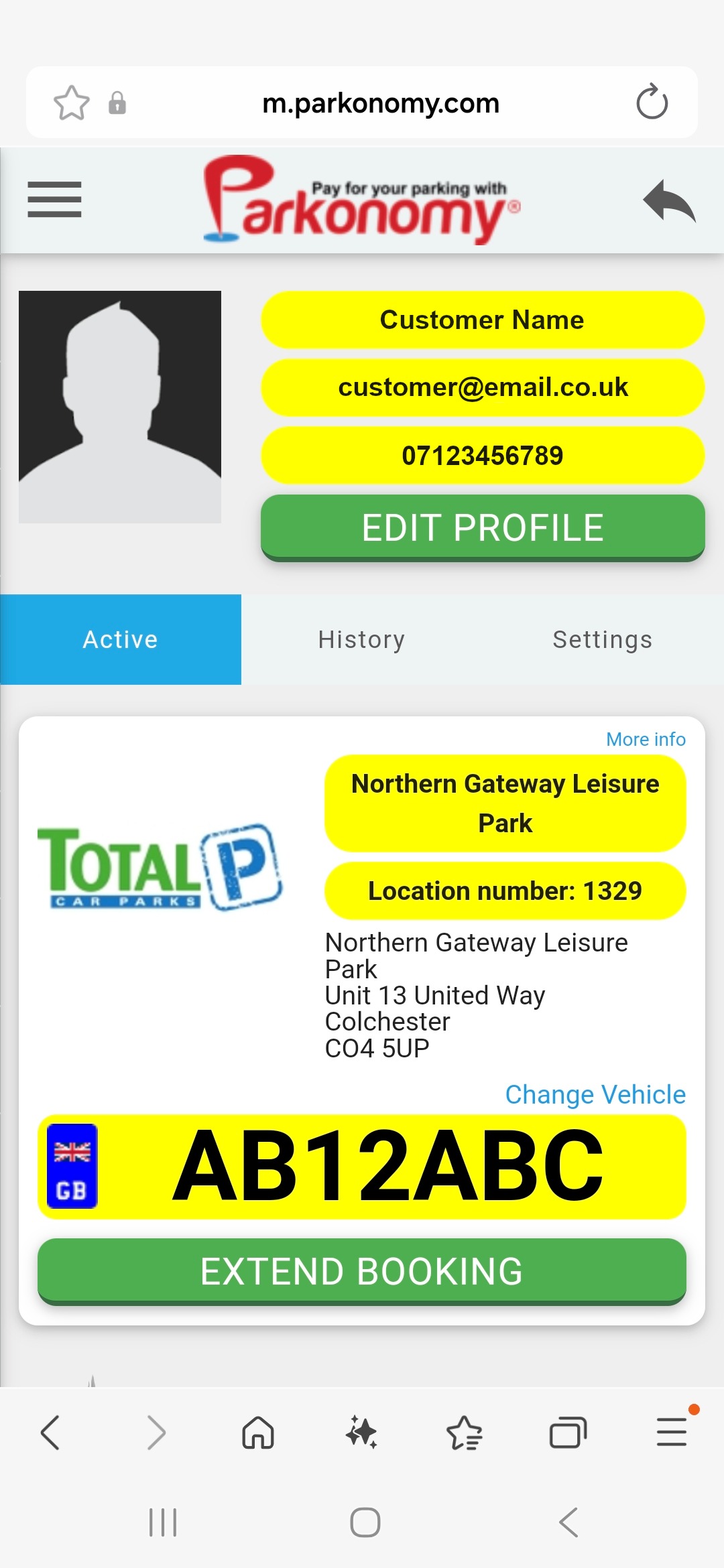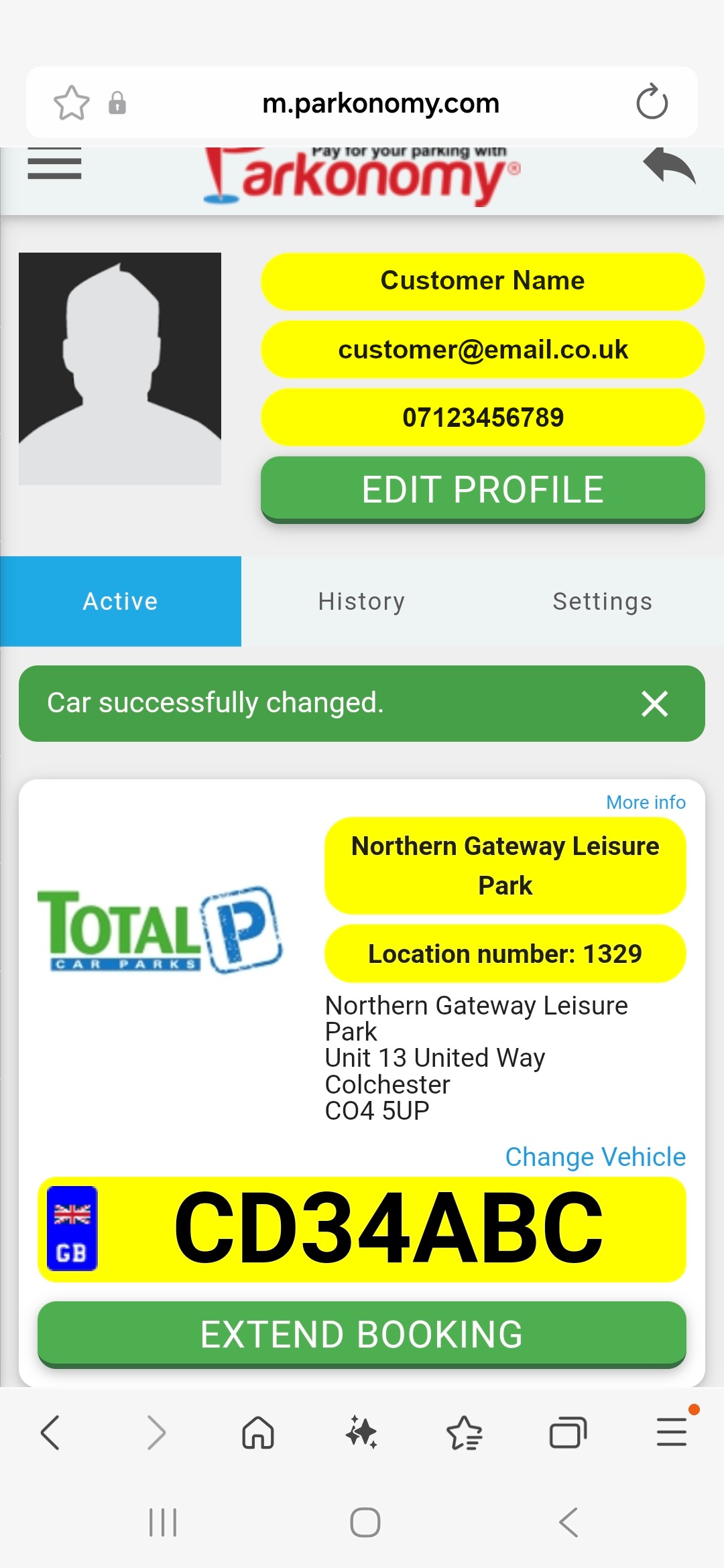 You can now see details of your active parking session. Tap on the blue text that says 'Change Vehicle'. |