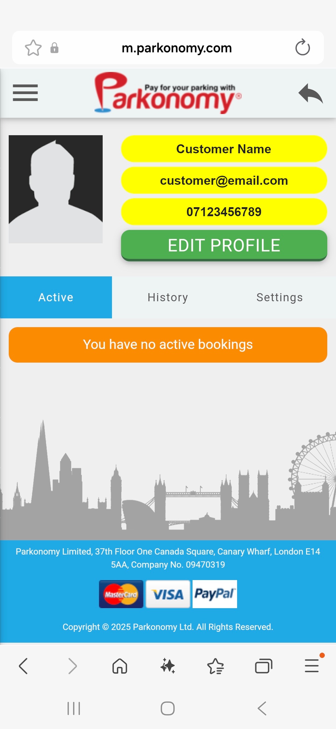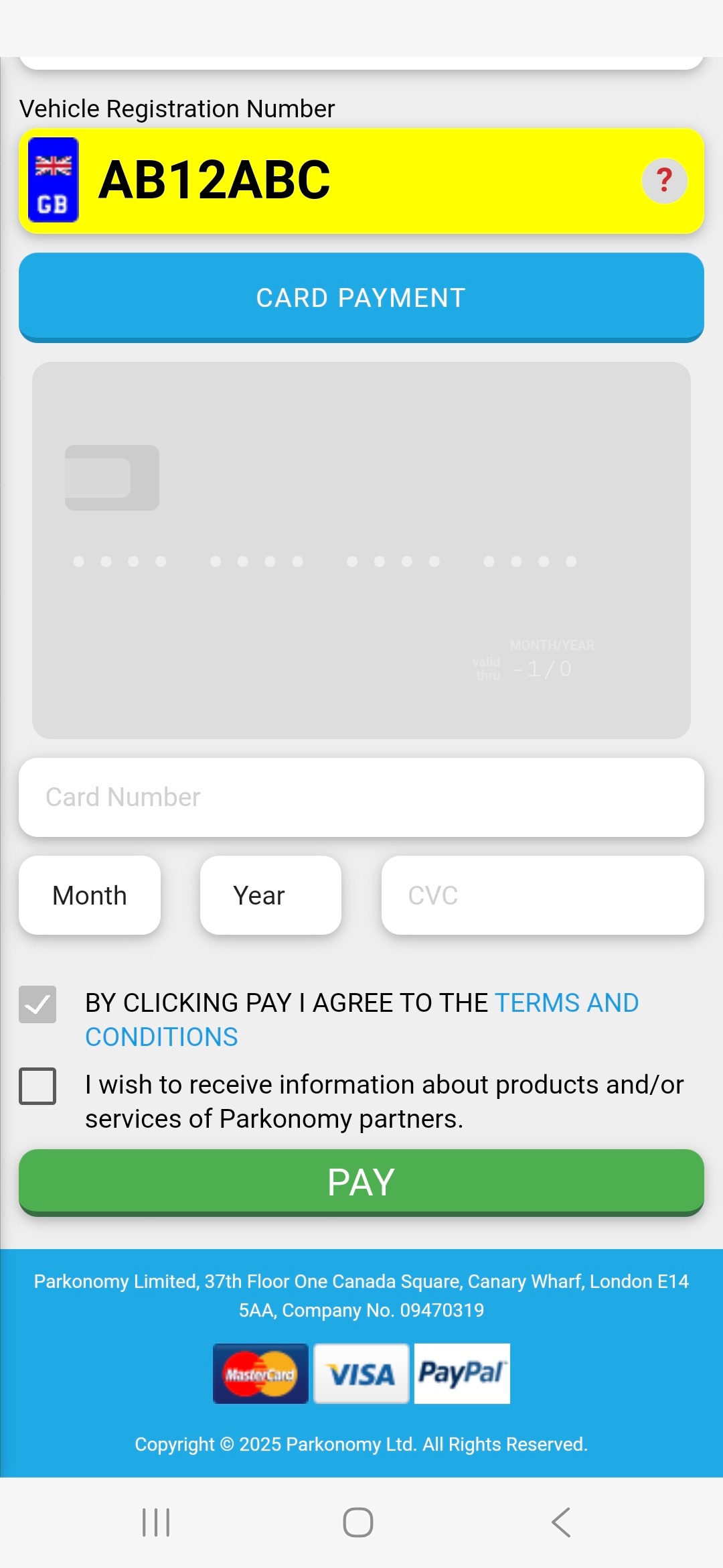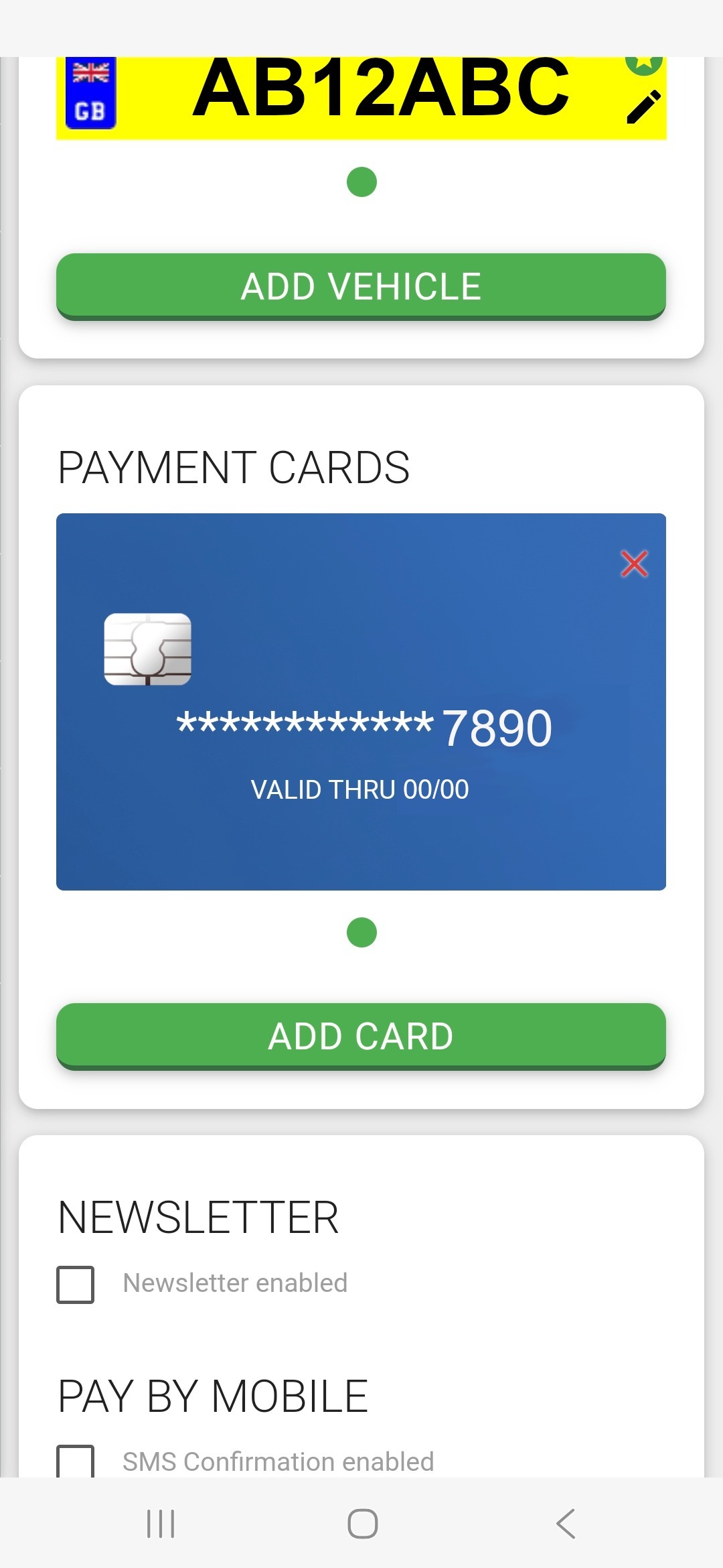 Card details can only be added at the end when booking a parking session through the normal booking process. |